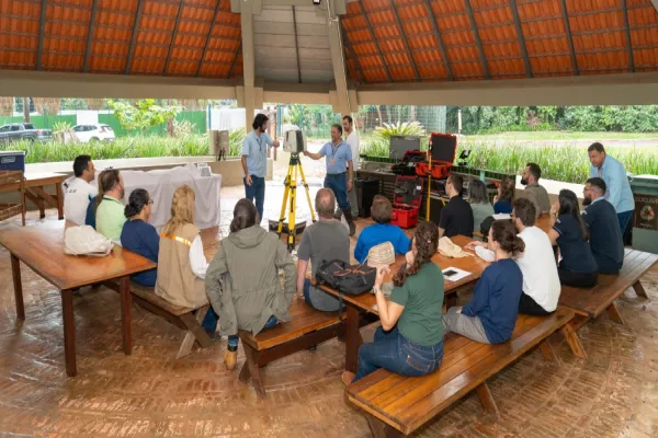 O treinamento foi dividido em 3 módulos. O primeiro sobre coleta de dados ALS com foco em modelagem de biomassa e carbono; o segundo sobre coleta de dados TLS em parcelas permanentes de inventário florestal; e o terceiro sobre visualização e manipulação dos dados ALS coletados. Participantes puderam presenciar a aplicação das técnicas na prática com um voo de drone e subsequente análise dos dados coletados in loco.