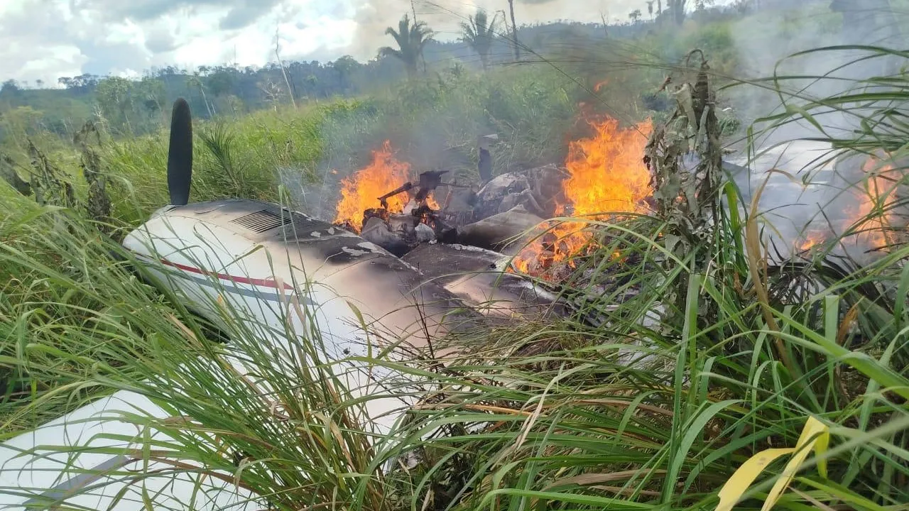 Ocupantes atearam fogo na aeronave e fugiram após ação coordenada com a Polícia Federal dentro do Programa de Proteção Integrada de Fronteiras...