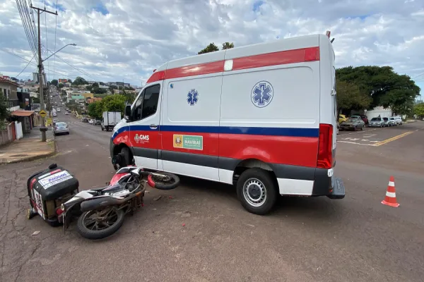 Um acidente de trânsito registrado na manhã desta terça-feira (20) em Cascavel envolveu uma ambulância da cidade de Naviraí (MS) e uma motocicleta, resultando em um homem de 31 anos ferido.