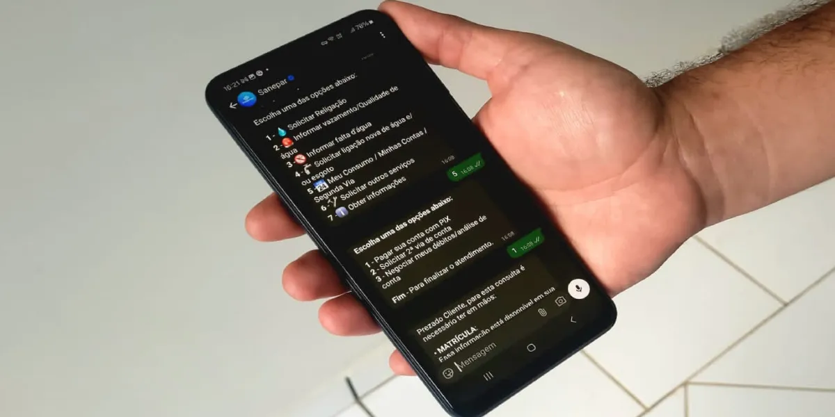 Sanepar tem nova forma de pagamento diretamente pelo WhatsApp ou app do banco