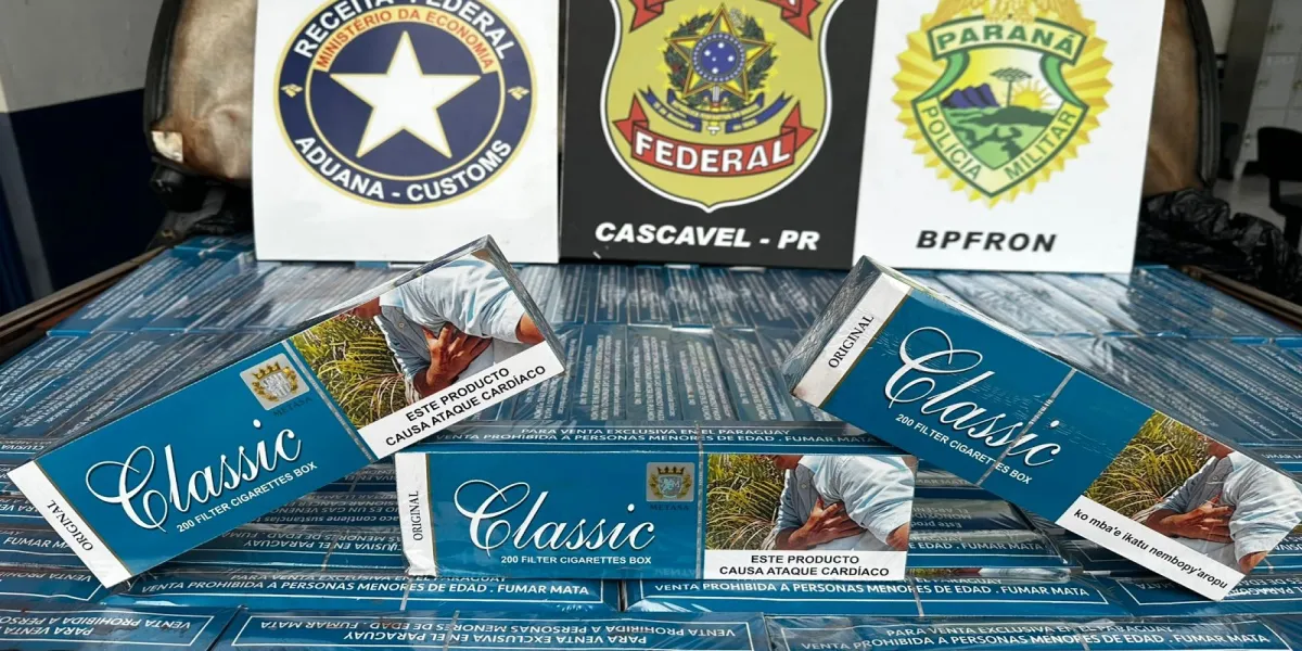 Na tarde desta quinta-feira (22), uma ação conjunta entre a Polícia Federal, a Receita Federal e a Polícia Militar de Cascavel resultou na apreensão de cerca de 32 caixas de cigarros de origem estrangeira, transportadas ilegalmente por rodovias do interior do Paraná. A abordagem aconteceu entre os municípios de Nova Aurora e Quarto Centenário, após trabalho de inteligência que monitorava a rota suspeita.