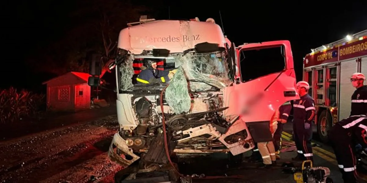 Segundo informações apuradas no local, os dois veículos envolvidos pertencem à mesma empresa e estavam carregados com ração. O acidente aconteceu quando um dos caminhões colidiu na traseira do outro, causando a destruição da cabine do veículo que vinha atrás. O impacto foi tão forte que o condutor ficou com as pernas presas no painel.