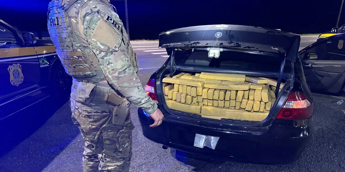 A ação foi realizada por agentes do Grupo de Operações com Cães da PRF. Durante a fiscalização, os policiais deram ordem de parada a um veículo com placas de Santa Catarina. O motorista desobedeceu e iniciou uma fuga em alta velocidade, dirigindo de forma perigosa pelo acostamento e chegando a quase atropelar um frentista em um posto de combustíveis próximo à rodovia.