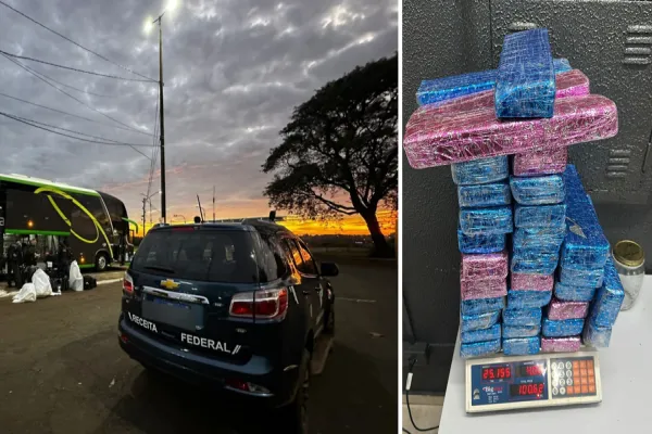 Neste domingo (25/05), servidores da Divisão de Repressão ao Contrabando e Descaminho da Alfândega da Receita Federal em Foz do Iguaçu encontraram 25 quilogramas de substância análoga a maconha durante uma fiscalização de rotina em um ônibus de linha. A abordagem aconteceu no começo da manhã, no posto da Polícia Rodoviária Federal em Santa Terezinha de Itaipu - PR. A droga foi encontrada em uma mala e em uma mochila, ambas despachadas no bagageiro do veículo.