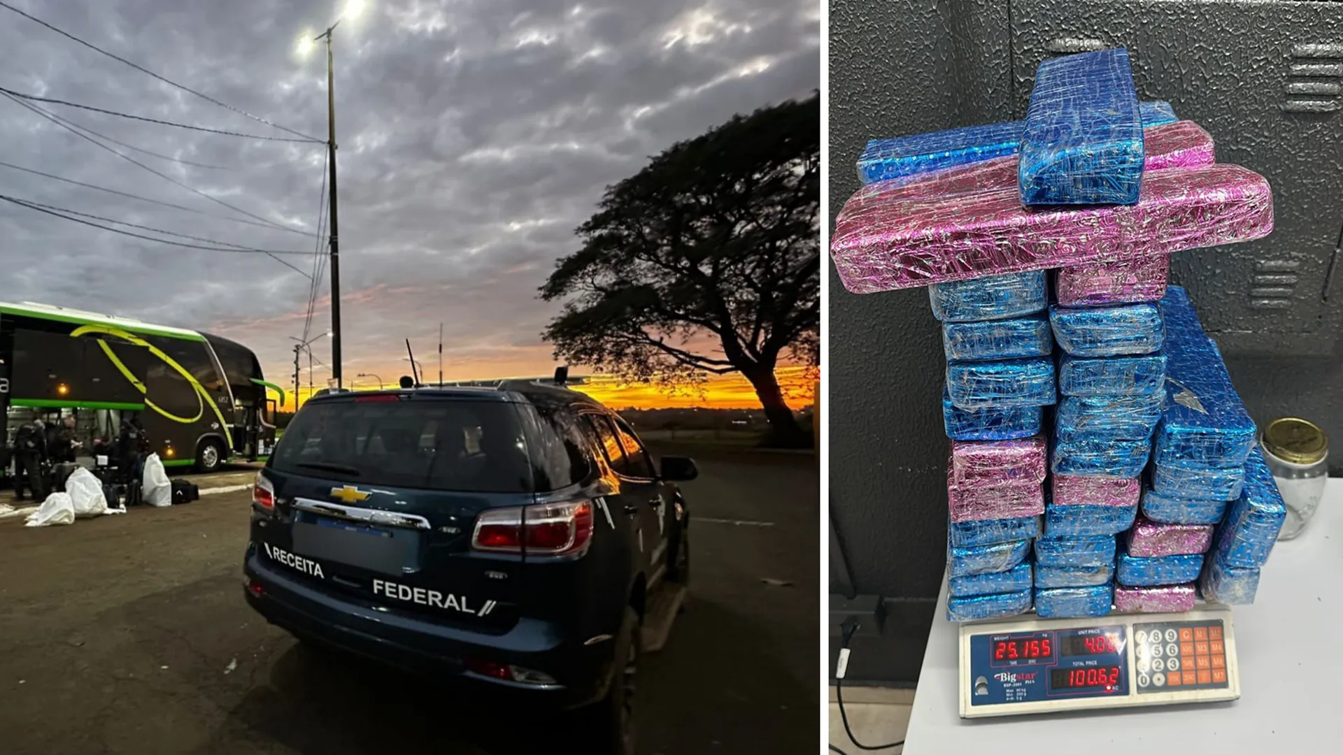 Receita Federal encontra 25 kg de maconha em ônibus de linha na BR-277, no oeste do Paraná