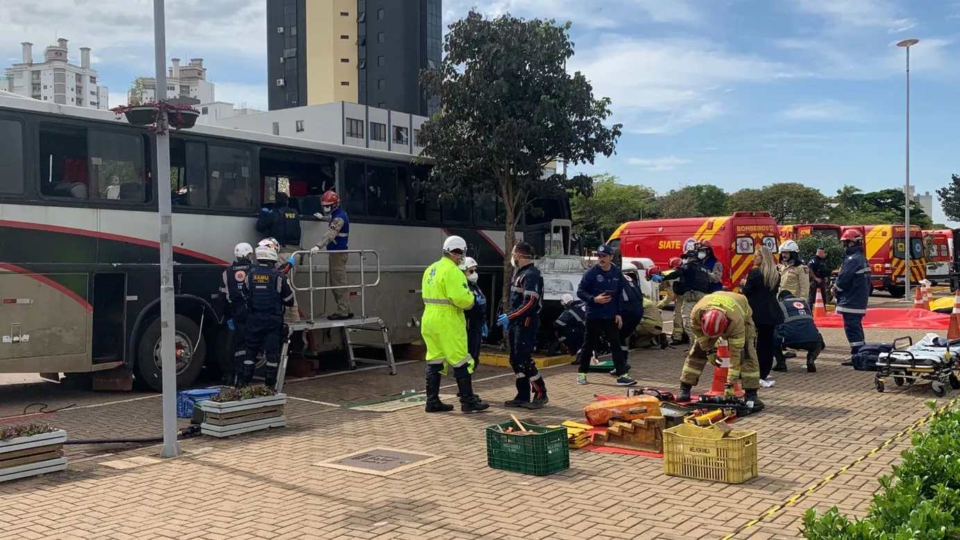 Simulado de acidente com múltiplas vítimas impacta população no Calçadão de Cascavel