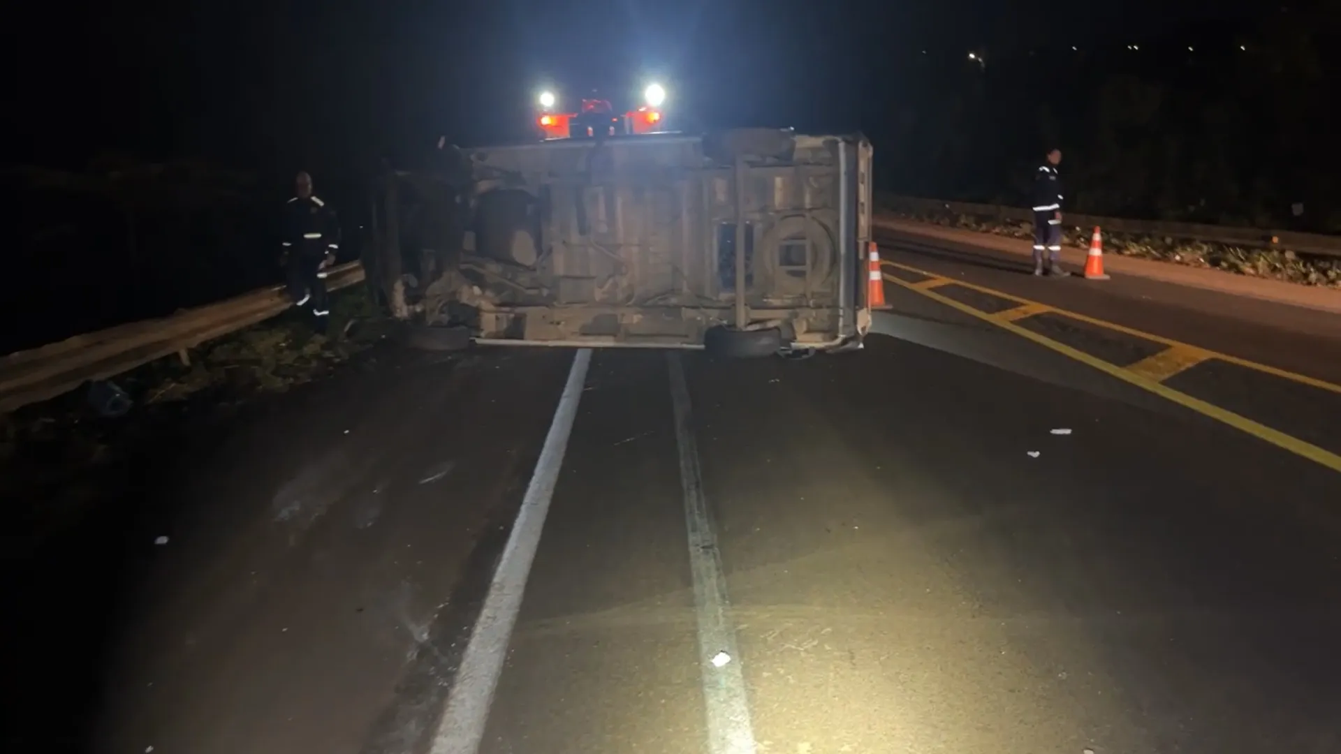 Apesar do impacto, o ônibus sofreu apenas danos superficiais na lateral e seguiu até um ponto seguro mais à frente, onde o motorista realizou o retorno e voltou ao local do acidente para prestar informações às autoridades. Já a van ficou tombada sobre a pista, com a frente e a lateral bastante danificadas.