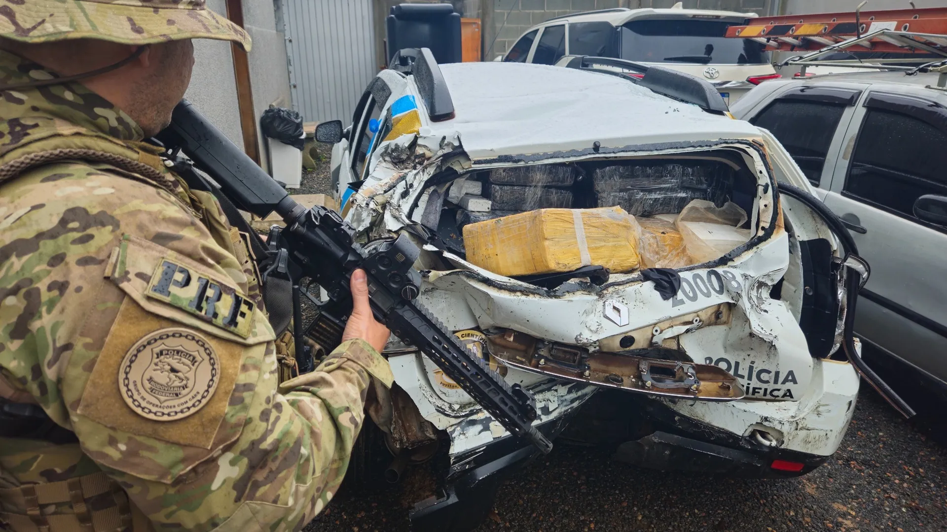 Falsa viatura da Polícia Científica é flagrada transportando maconha e colide durante fuga na BR-277