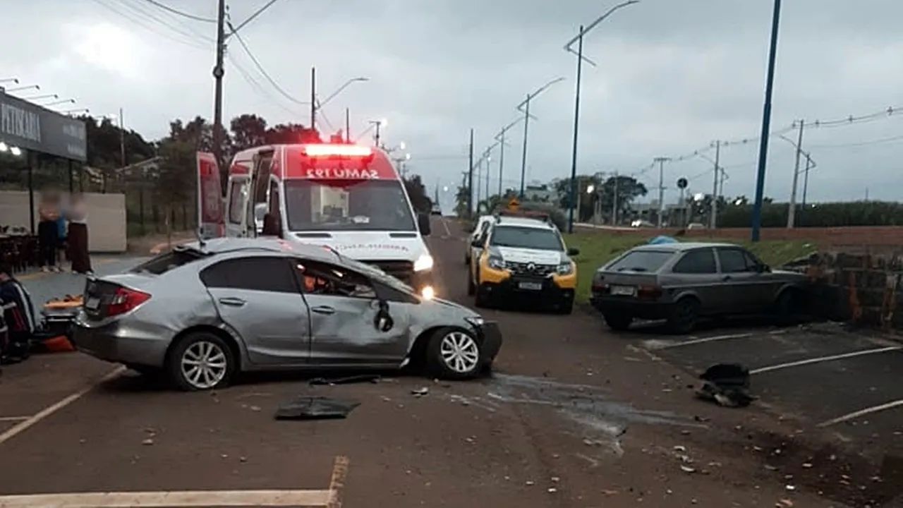 Veículo capotou várias vezes após bater no meio-fio no trevo de acesso ao Posto Idasa; uma pessoa teve suspeita de fratura..