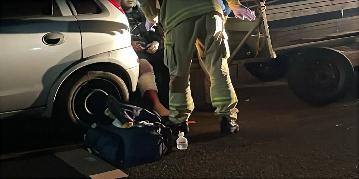 Motociclista sofre laceração na perna direita após colisão com veículo com carretinha em Cascavel