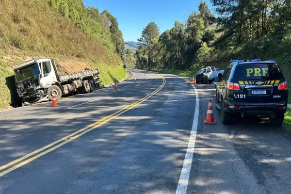 Grave colisão entre caminhonete e caminhão interdita BR-277 em Prudentópolis