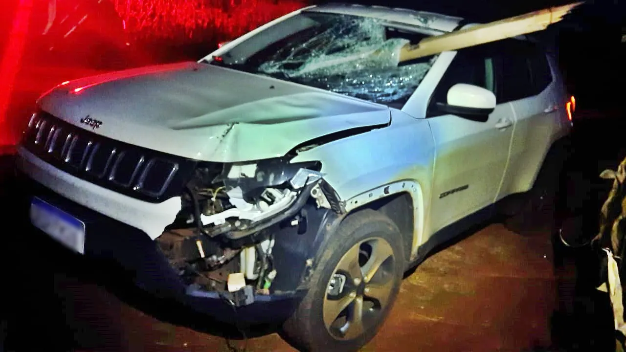 Jeep colide com placa de sinalização na PR-364 entre Assis Chateaubriand e Palotina