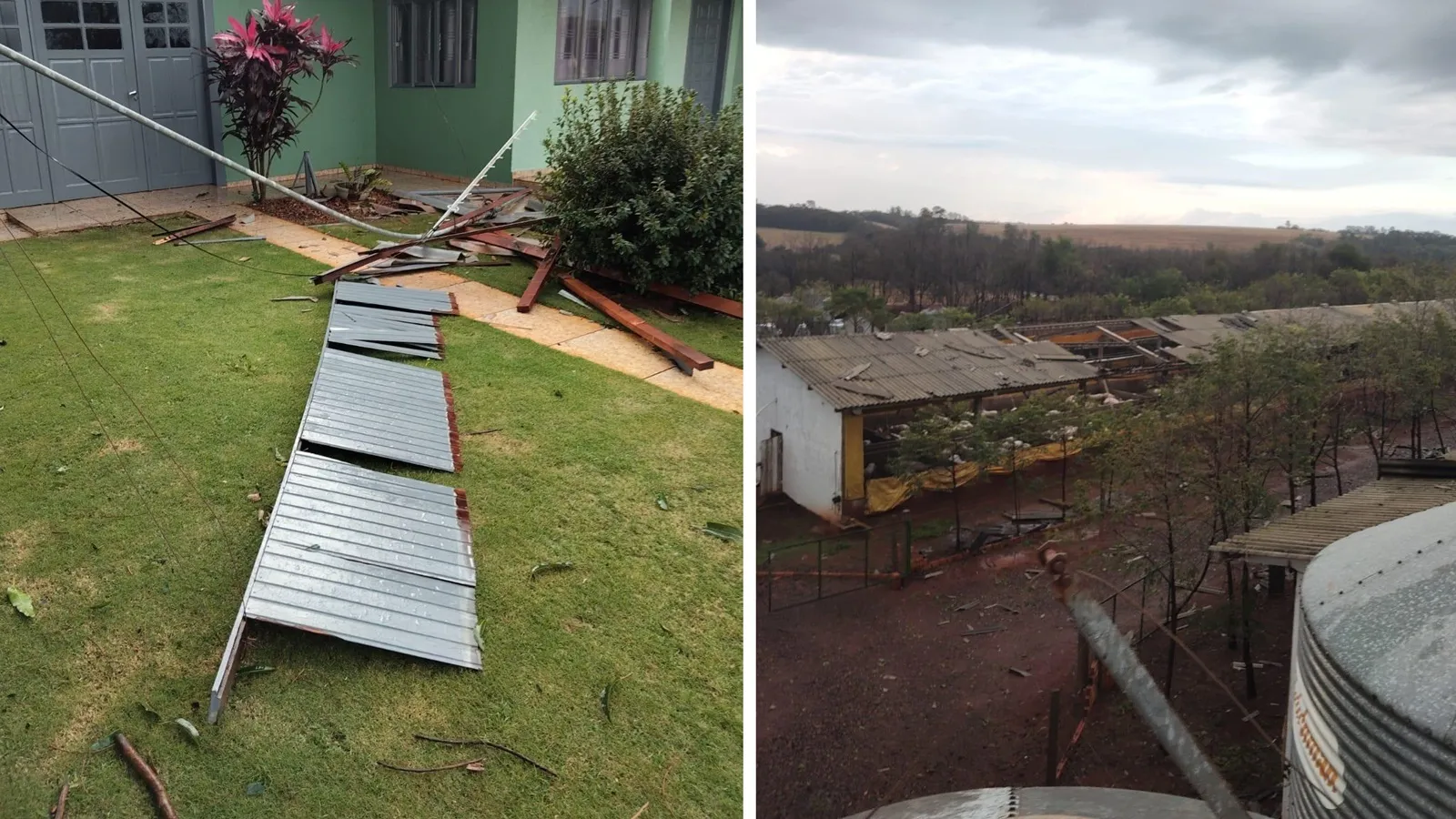 Barracões, chiqueiros e até residências tiveram seus telhados arrancados pela ventania, resultando em grandes prejuízos aos produtores locais. Árvores foram derrubadas e postes da rede elétrica acabaram caindo, comprometendo o fornecimento de energia em diversas localidades da região afetada.
