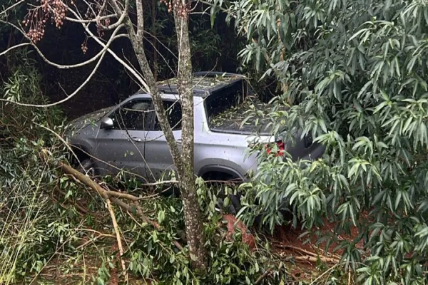 Fiat Toro sai da pista e despenca em ribanceira na PR-180 em Juvinópolis