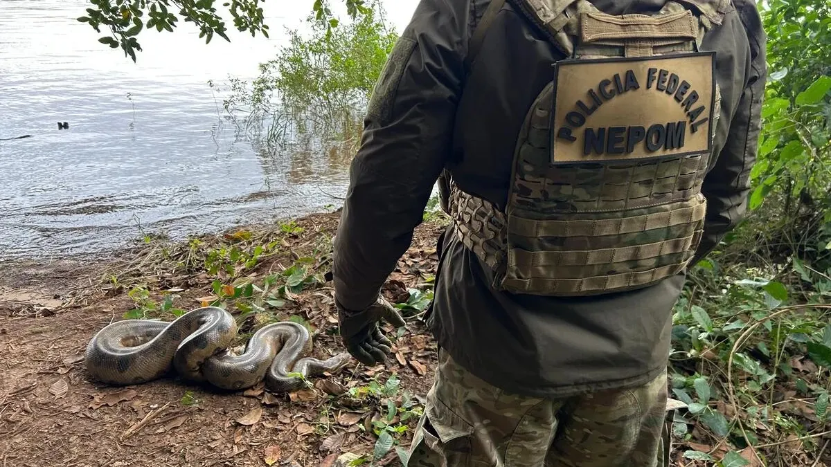 Sucuri de 3,7 metros é resgatada pela PF em área urbana no oeste do Paraná