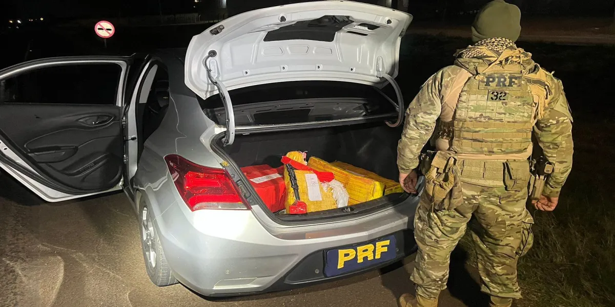 O suspeito conduzia um Chevrolet Prisma e foi abordado nas proximidades da praça de pedágio do município. Ao vistoriarem o veículo, os policiais encontraram diversos fardos da droga no porta-malas e no banco traseiro.