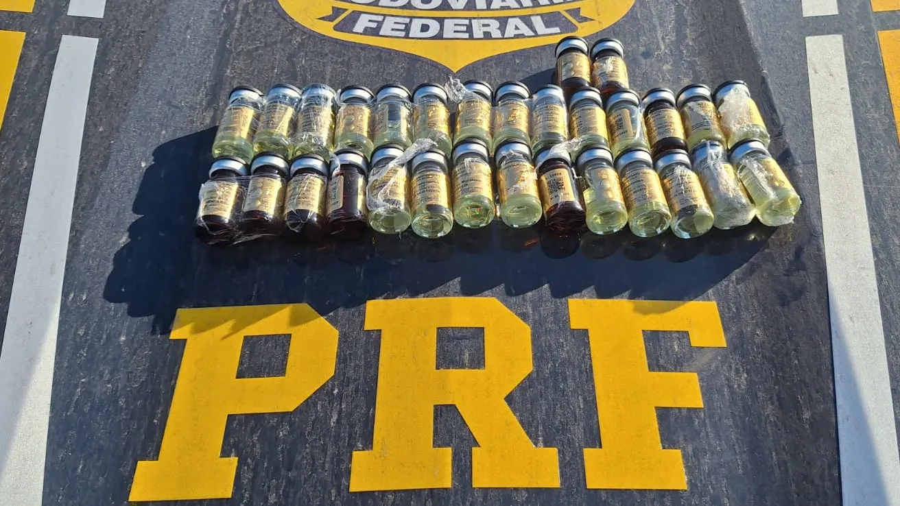 A Polícia Rodoviária Federal (PRF) apreendeu 30 frascos de anabolizantes de origem estrangeira durante uma fiscalização de combate a crimes transfronteiriços no Km 155 da BR-163, em Capitão Leônidas Marques (PR), na última segunda-feira (09). A ação foi realizada pelo Grupo de Policiamento Tático.