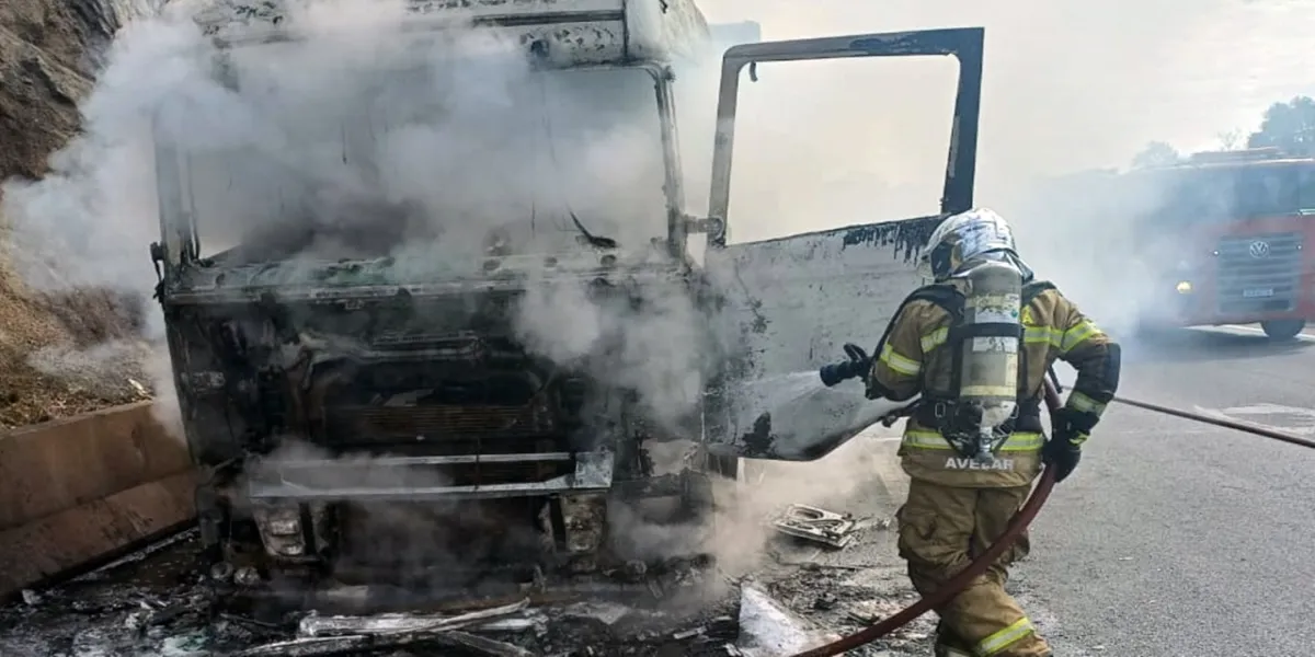 Fogo começou no motor do veículo e se alastrou; motorista não se feriu e testou negativo para álcool..