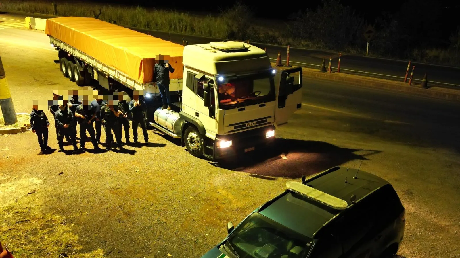 O veículo tinha placas brasileiras. O comportamento nervoso do motorista levantou suspeitas e motivou uma verificação mais minuciosa. A carreta, que estava enlonada, estava aparentemente vazia. Com a averiguação dos servidores, foi confirmado que o veículo não transportava nenhuma carga lícita, mas sim, uma grande carga de aparelhos celulares descaminhados.