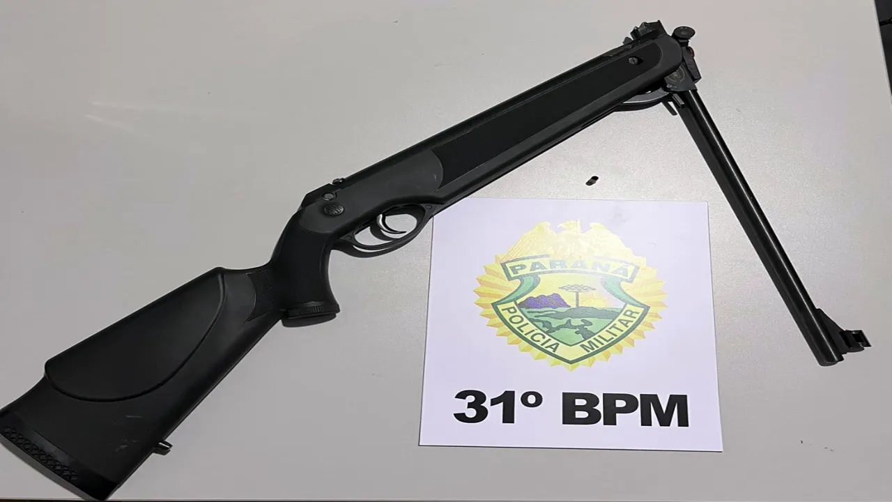 Durante a abordagem, nada de irregular foi encontrado com os suspeitos nem no interior do veículo. No entanto, ao vistoriar a área onde eles se encontravam anteriormente, os policiais localizaram uma carabina de pressão que havia sido adaptada para disparar munição calibre .22. A arma estava com uma munição já deflagrada na câmara.