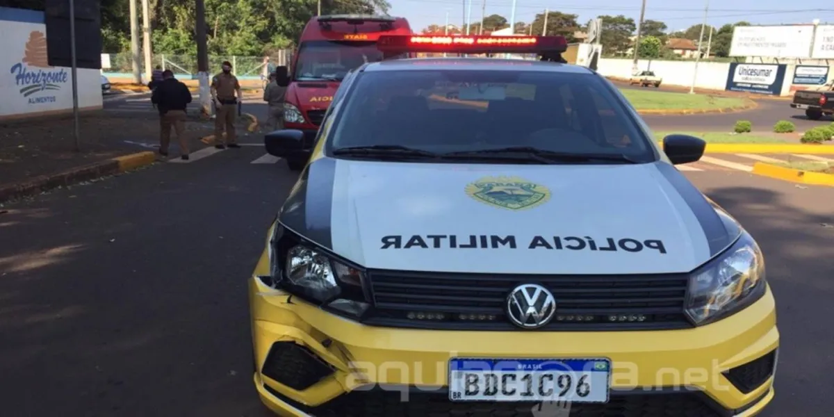 Um acidente de trânsito envolvendo uma viatura da Polícia Militar e uma motocicleta Honda Biz foi registrada na manhã desta quarta-feira (26) em Marechal Cândido Rondon, na rotatória entre as Avenidas Rio Grande do Sul e Irio Jacob Welp.