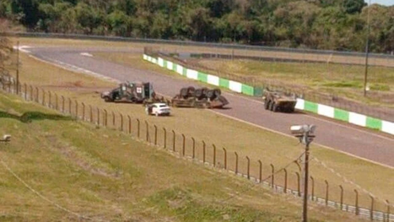 Nesta quarta-feira (26), um blindado modelo Guarani, do Exército Brasileiro, tombou quando realizava um treinamento na pista do Autódromo Zilmar Beux em Cascavel.