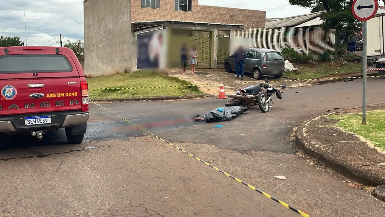 Um grave acidente de trânsito resultou na morte de um motociclista na tarde desta segunda-feira (4), em Cascavel. A colisão ocorreu no cruzamento das ruas Bororós e Parecis, no Bairro Santa Cruz, em uma área sinalizada com placas de parada obrigatória.