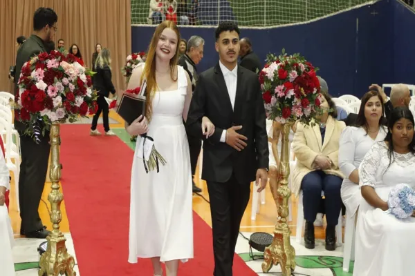 Neste sábado (09/08), 127 casais protagonizaram um momento histórico ao oficializarem suas uniões durante o tradicional Casamento Coletivo, realizado no Complexo Esportivo Ciro Nardi, em Cascavel. Apesar do frio, noivas, noivos e familiares lotaram o local, que estava cuidadosamente decorado para a ocasião.