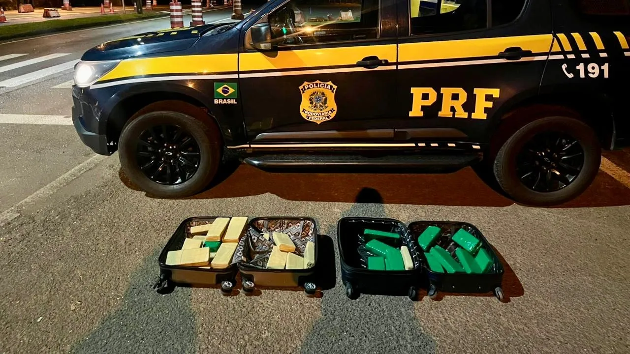 Durante a vistoria no bagageiro do veículo, os policiais encontraram duas malas pesadas e com cheiro de maconha. O passageiro identificado como responsável pela bagagem afirmou que pegou as malas em Foz do Iguaçu (PR) e levaria até Joinville (SC).