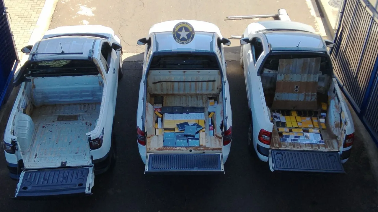 Durante a inspeção, foram localizados fundos falsos nas caçambas dos três automóveis. Dentro deles, havia 416 aparelhos celulares, com valor de R$491.314,00.
