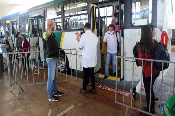 Para entrar nos ônibus, o passageiro é obrigado, como prevê o Decreto, a comprovar com crachá ou holerite que pertence a uma das atividades essenciais autorizadas. Também continua obrigatório o uso de máscara e a higienização das mãos com álcool em gel.