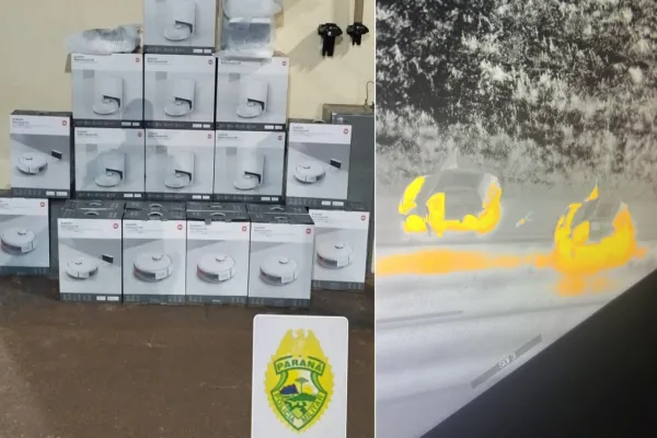 Durante ação integrada, policiais interceptaram veículo com dezenas de robôs aspiradores contrabandeados da fronteira.