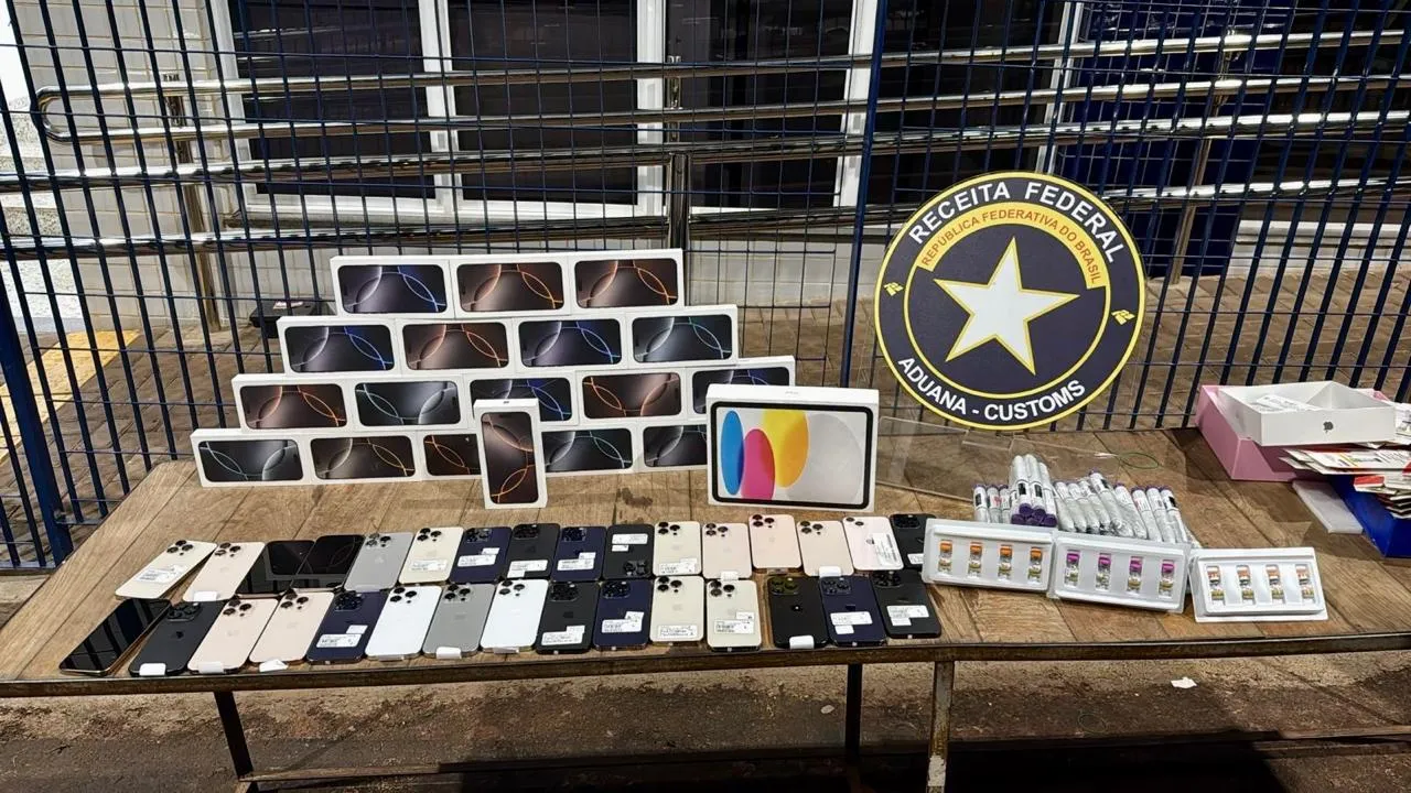 Entre as mercadorias ilícitas, haviam 50 smartphones, 63 canetas emagrecedoras e 12 ampolas de tirzepatida, substância armazenada em frascos utilizada para o tratamento da obesidade e diabetes tipo 2. O valor total da apreensão é de aproximadamente R$150.000,00.
