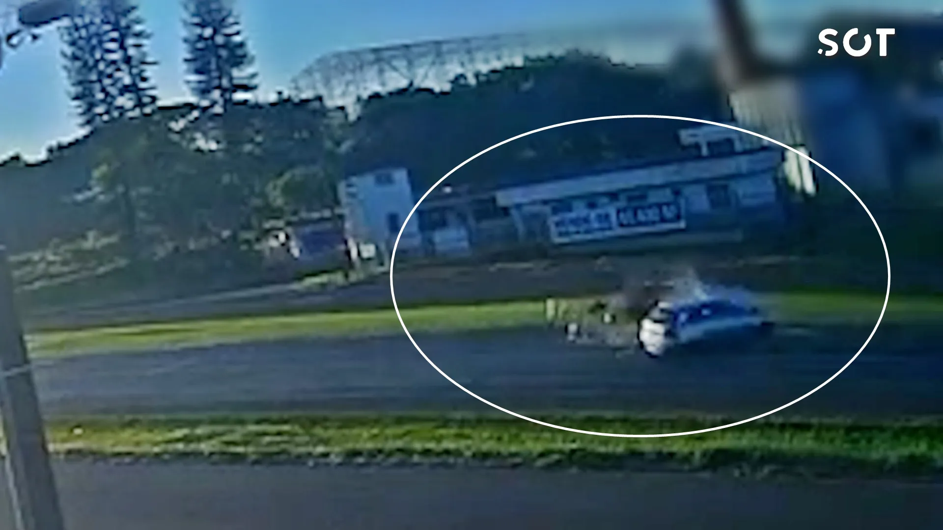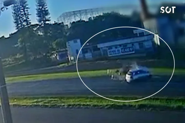 Câmera de segurança flagrou o momento do impacto que deixou oito pessoas feridas na manhã deste domingo (31).