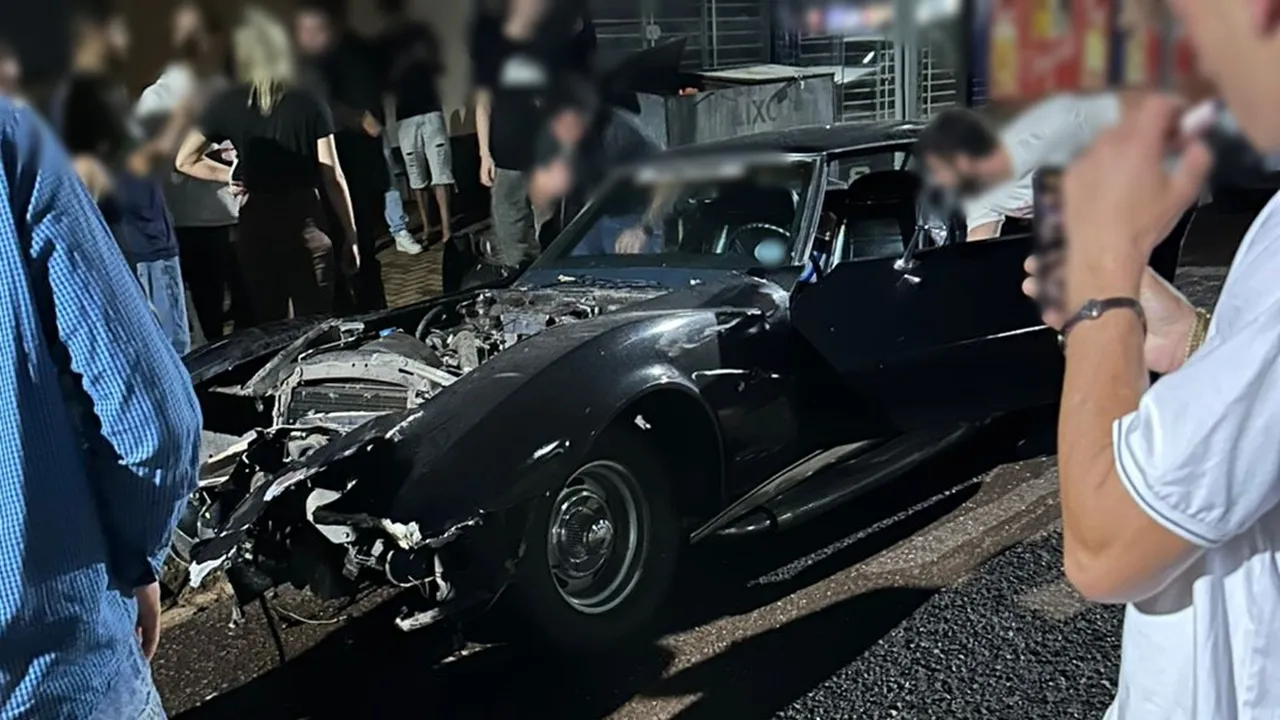 Corvette vira sucata em segundos e espetáculo irregular na Avenida das Torres em Cascavel