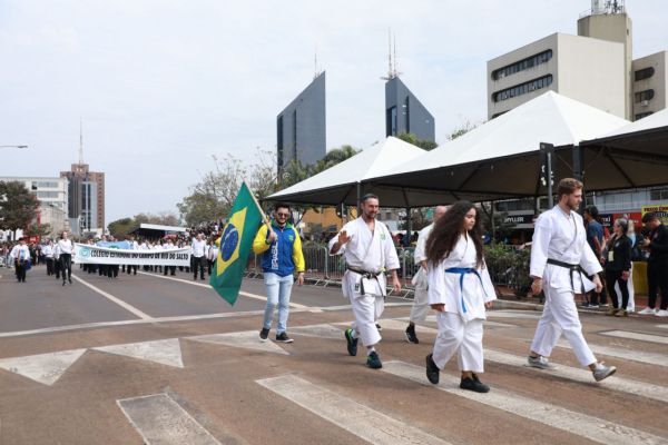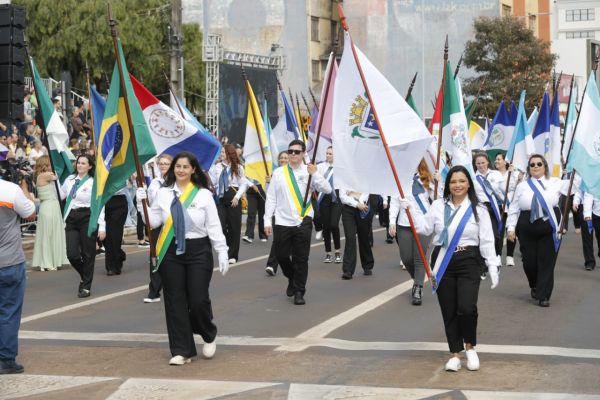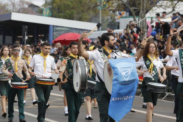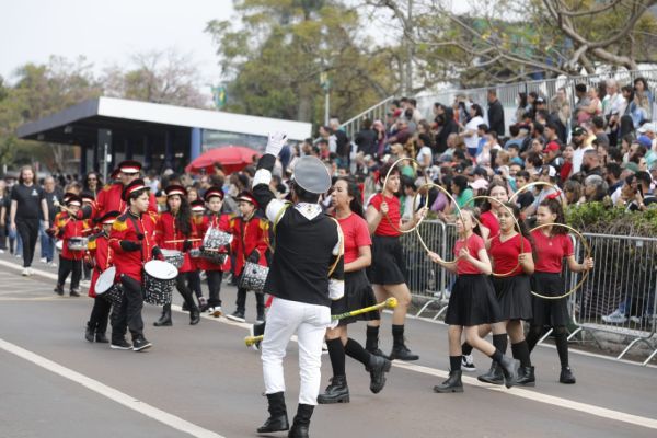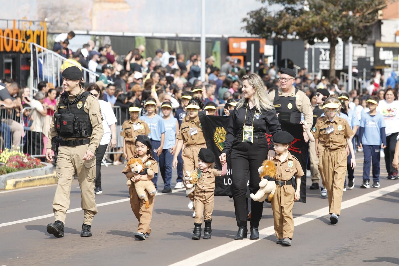 Ao longo da manhã, o verde e amarelo tomou conta da avenida em um espetáculo de música, cores e emoção. O desfile contou com a participação de 63 instituições, envolvendo 7.693 pessoas a pé, além de 162 veículos, 95 motocicletas e 24 cavalos. O destaque ficou para a rede municipal de ensino, que levou mais de 2 mil alunos e profissionais, demonstrando entusiasmo e engajamento das novas gerações. A Banda da 15ª Brigada de Infantaria Mecanizada e nove fanfarras escolares deram o tom da festa, mantendo o ritmo vibrante durante toda a celebração.