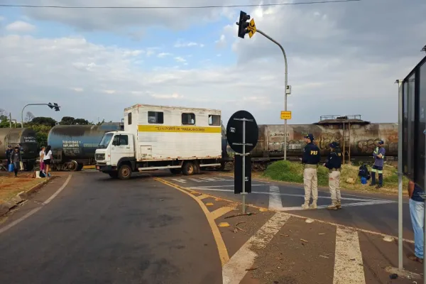Caminhão lotado de trabalhadores é atingido por trem em cruzamento perigoso em Jandaia do Sul