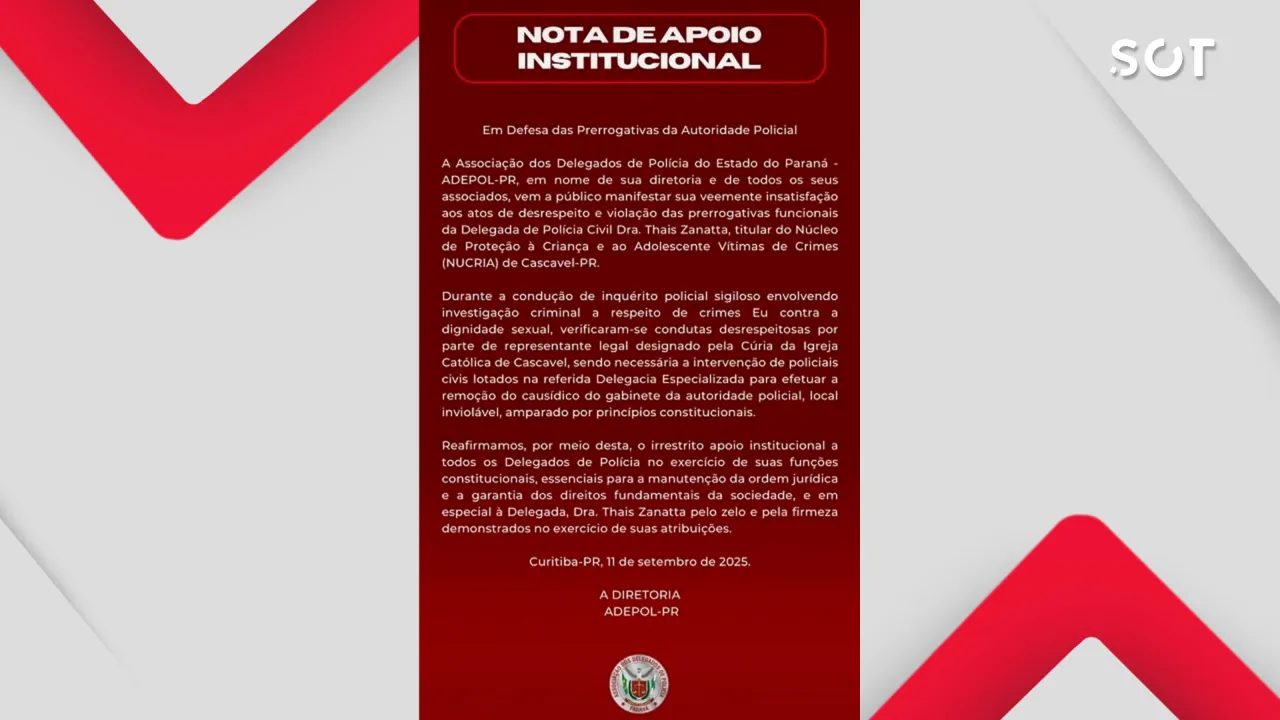 Segundo a Adepol-PR, o episódio envolveu a atuação de um representante legal da Cúria da Igreja Católica de Cascavel, cuja conduta resultou na necessidade de intervenção de policiais civis para sua retirada do gabinete da autoridade policial, considerado um espaço inviolável garantido pela Constituição.
