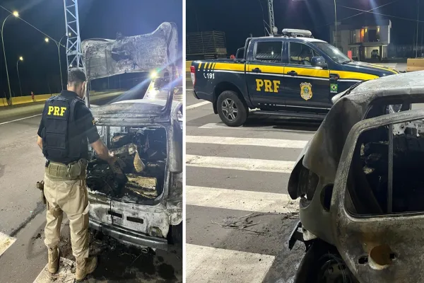 No local, os policiais constataram que se tratava de um carro branco, carregado com diversos invólucros de maconha. Pouco depois, o veículo começou a pegar fogo, sendo necessária a atuação do Corpo de Bombeiros para conter as chamas.