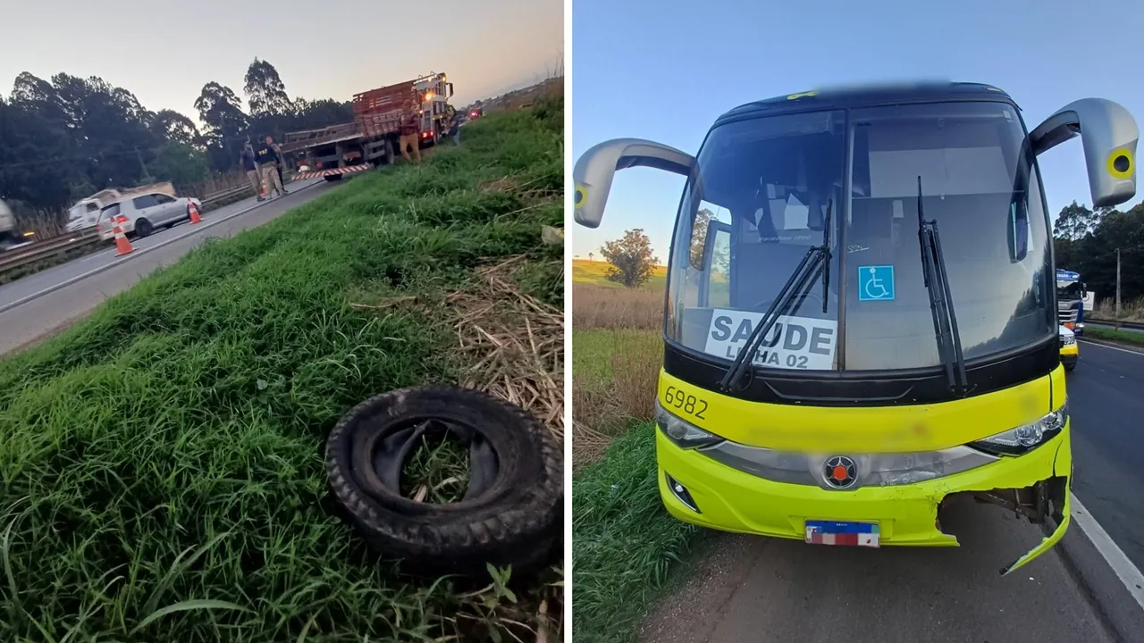 O sinistro começou quando um caminhão VW/6.90, com placas de Ponta Grossa, teve o pneu dianteiro direito estourado e precisou sair para a direita da pista. Atrás dele, uma VW/Saveiro, de Carambeí, reduziu bruscamente para não atingir os destroços deixados na via. A manobra forçou o ônibus Volvo/Mpolo Paradiso, que transportava pacientes a serviço do SUS, a frear de forma repentina.