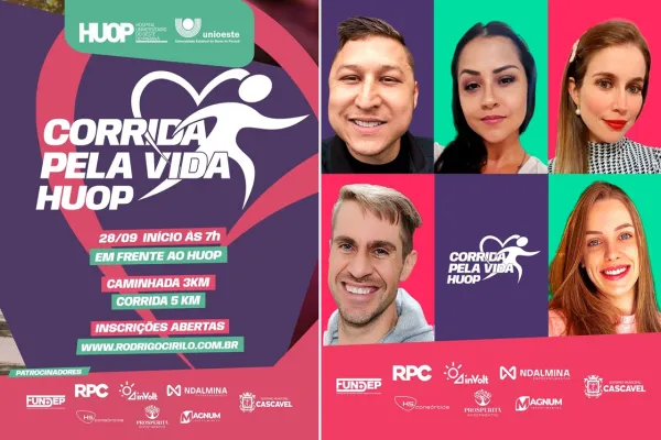 Falta pouco. No dia 28 de setembro, o Hospital Universitário do Oeste do Paraná (HUOP) promove a Corrida Pela Vida, um evento que une saúde, esporte e solidariedade. Com largada em frente ao hospital, a atividade terá duas modalidades, 3 km de caminhada e 5 km de corrida. O evento busca visibilidade para o tema, além da conscientização em prol desta causa nobre.
