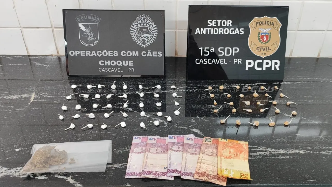 Uma ação conjunta da Polícia Civil do Paraná (PCPR) e da Polícia Militar (PMPR), realizada nesta sexta-feira (19), resultou na prisão de um casal de 38 e 42 anos por tráfico de drogas em Cascavel. A operação ocorreu no âmbito da Operação Sinergia e foi autorizada pela 3.ª Vara Criminal da cidade.