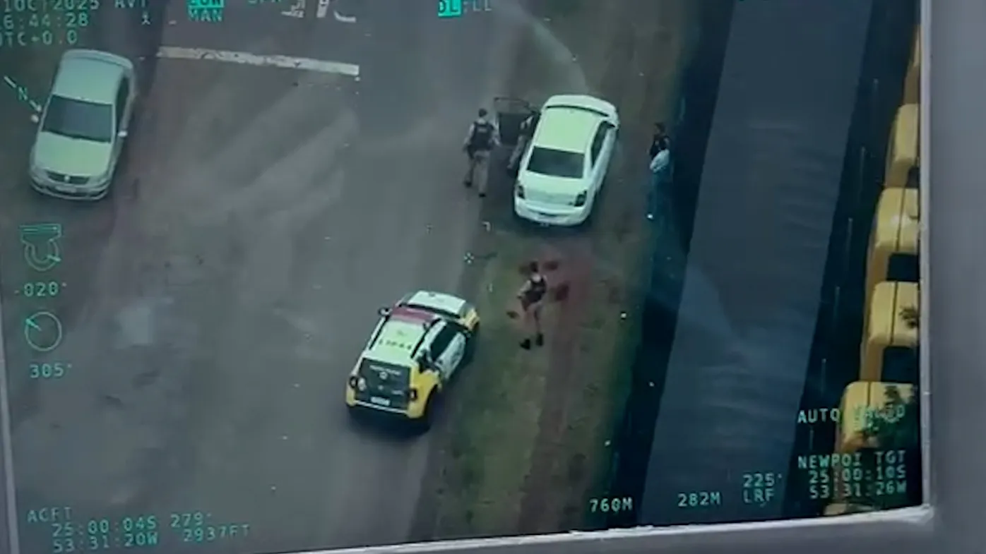 A ação teve início por volta das 13h15, quando a equipe do helicóptero Falcão 13 recebeu informações sobre dois veículos suspeitos que trafegavam pela BR-277, sentido Cascavel. Tratava-se de um GM Meriva, prata, e um GM Cobalt, branco, ambos possivelmente carregados com produtos ilícitos.