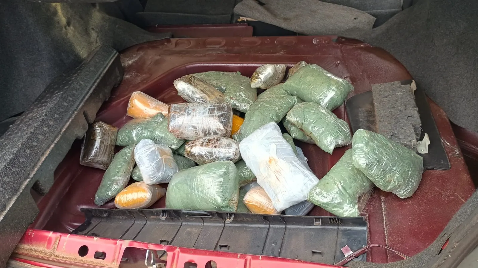Os agentes abordaram um Toyota Allion com placas do Paraguai e, durante a inspeção, localizaram um compartimento oculto sob o estepe, onde estavam escondidos 23,7 quilos de pasta de maconha — substância de alto teor de pureza, frequentemente utilizada na produção de entorpecentes derivados.