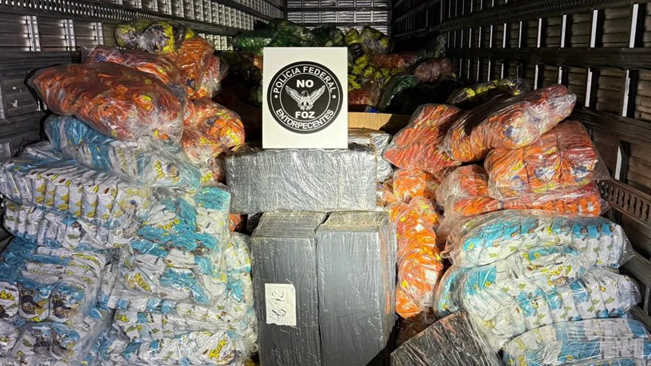 A Polícia Federal apreendeu mais de 1,2 tonelada de maconha que estava escondida em uma carga de salgadinhos durante uma fiscalização de rotina na BR-277, no município de Céu Azul, no Oeste do Paraná. A ação ocorreu na noite de sexta-feira (10), quando agentes federais abordaram um caminhão que levantou suspeitas durante uma operação voltada ao combate de crimes na região de fronteira.