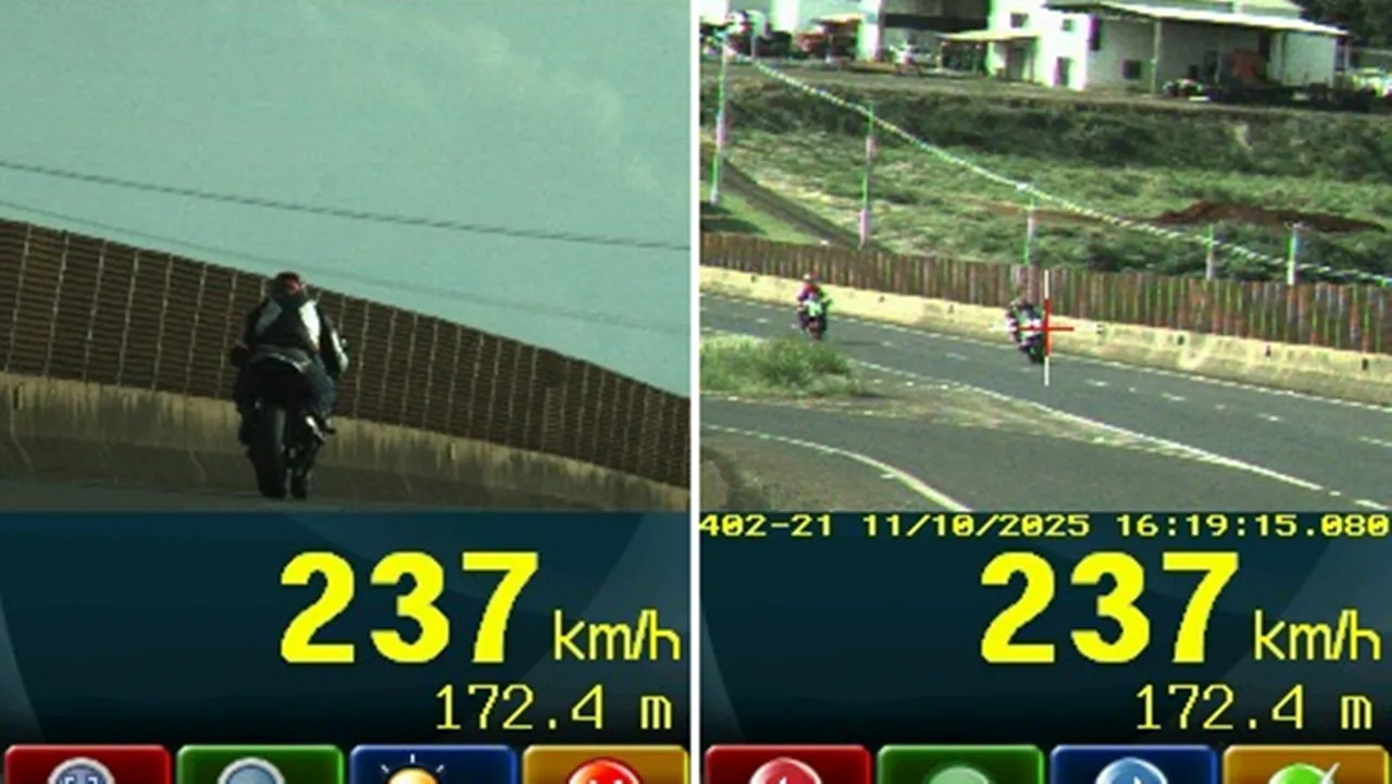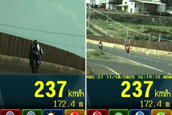 No último sábado (11), a Polícia Rodoviária Federal (PRF) flagrou uma motocicleta trafegando a 237 km/h na BR-369, em Corbélia (PR). O registro foi feito durante uma fiscalização de velocidade realizada pelos policiais rodoviários federais no trecho.