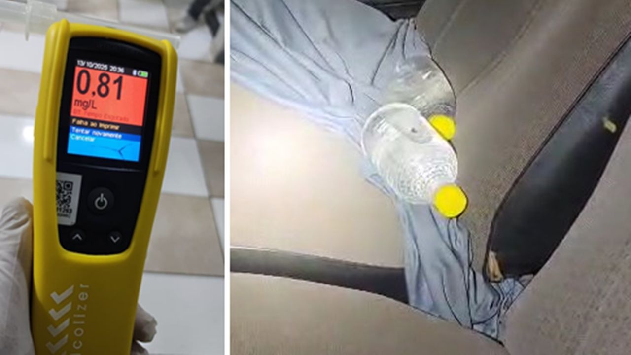 De imediato, uma equipe se deslocou até o local e localizou o carro. Ao abordar o condutor, os policiais perceberam claros sinais de embriaguez. Questionado, o homem afirmou não possuir Carteira Nacional de Habilitação (CNH). Dentro do veículo, os agentes encontraram garrafas de bebidas alcoólicas.