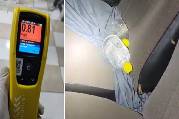 De imediato, uma equipe se deslocou até o local e localizou o carro. Ao abordar o condutor, os policiais perceberam claros sinais de embriaguez. Questionado, o homem afirmou não possuir Carteira Nacional de Habilitação (CNH). Dentro do veículo, os agentes encontraram garrafas de bebidas alcoólicas.