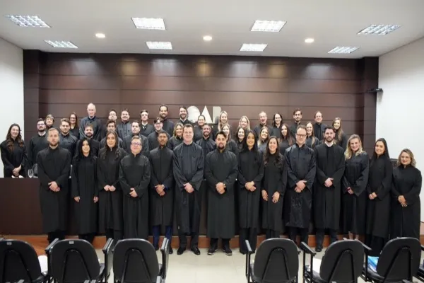 A OAB Cascavel (Ordem dos Advogados do Brasil - Subseção de Cascavel) sediou, nessa segunda-feira (20), mais uma cerimônia de compromisso de novos advogados do Paraná. Ao todo, 32 bacharéis, provenientes de 11 subseções do Estado, fizeram a transição para o exercício oficial da profissão, assumindo a defesa da Justiça, da democracia e dos direitos fundamentais.