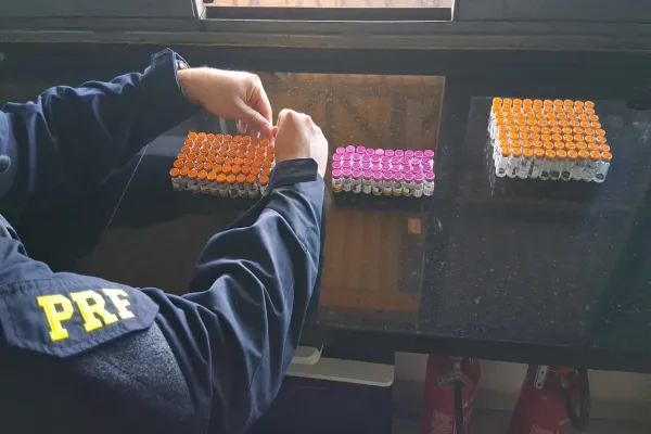 Ao inspecionar o carro, os agentes encontraram os frascos escondidos dentro do filtro de ar do motor, em um espaço sujeito a altas temperaturas — ambiente totalmente inadequado para o transporte desse tipo de substância, que exige condições controladas e temperatura resfriada.